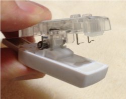 肝心の使い方は、開くと端子が見えるのでそこをバッテリーパックの端子に接するようにはすむだけ。