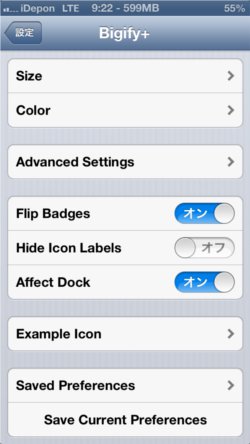 今日はアイコンのサイズや角度、透明度や色まで変えられる脱獄アプリBigify+を紹介します。iOS7.0.4で動きました
