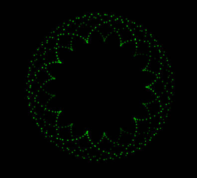 x=sin(nθ)cos(θ),y=sin(nθ)sin(θ)で表されます。おもしろいことに、nの値だけ花びらが増えます。