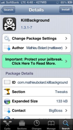 まずはcydiaのSearchからKillBackgroundと検索。