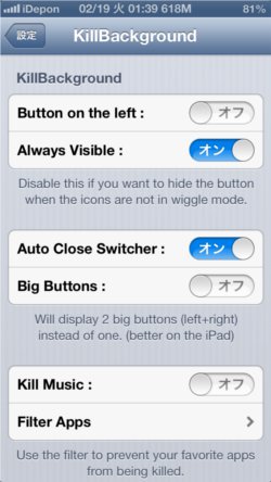 【脱獄アプリ】バックグラウンドの起動中アプリをまとめて終了KillBackground