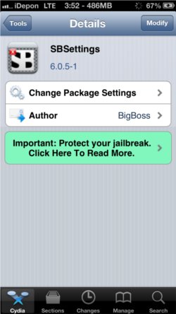 まずはcydiaを起動し、SBSettingsで検索しインストール。iPhone5、iOS6.1で問題なく動きました。今のところないけど、もし再起動中に動かなくなったらボリュームアップキーを押し続けろとのことです。