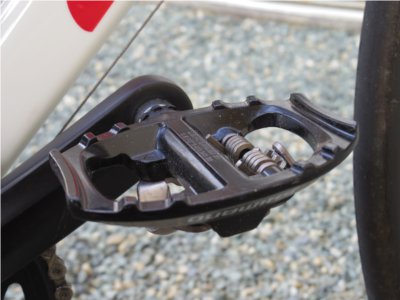 違いはクリートと呼ばれる取り付け金具が、SPD-SLだと外に出っ張ってしまう。